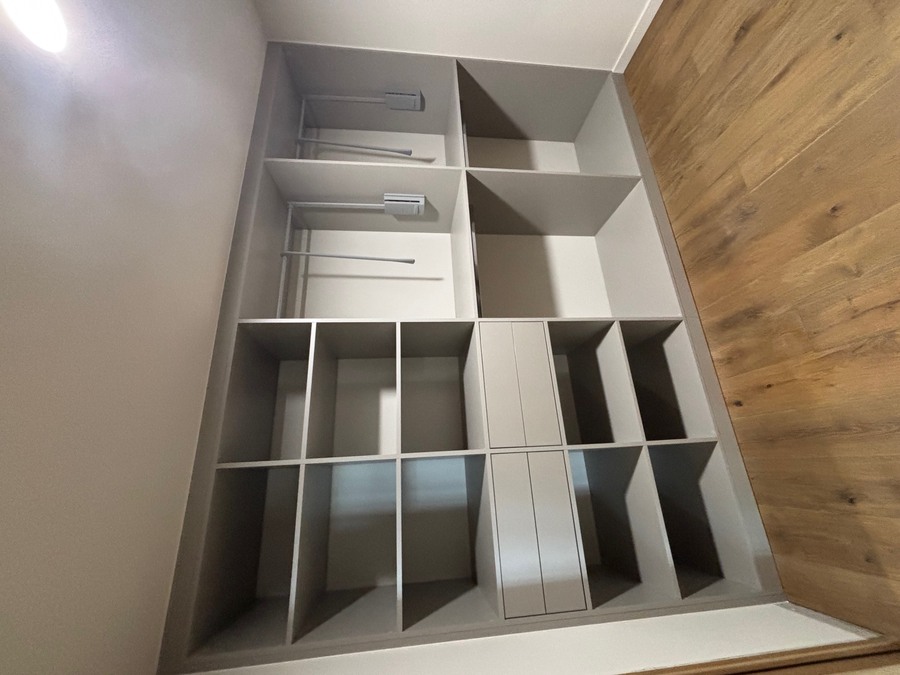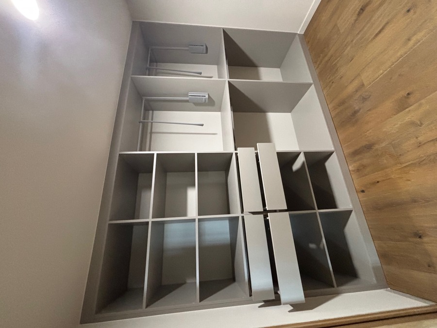 Fort d'une longue expérience dans l'art de concevoir des dressings sur mesure nous proposons de réaliser votre dressing de rêve tout en exploitant le moindre recoin. À vous de choisir le nombre de penderies pré-équipées de tringles, d'étagères fixes et mobiles, de casiers à chaussures, de tiroirs et autres niches ouvertes ou fermées. Il ne reste plus qu'a se mettre d'accord entre vous pour la répartition des rangements.